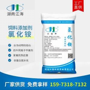 湖南江海環(huán)保實業(yè)公司生產(chǎn)的飼料級氯化銨是以農(nóng)用或工業(yè)氯化銨為原料經(jīng)過去雜、提純等工藝精制而成。產(chǎn)品純度高,重金屬離子含量低等特點。能作為非蛋白劑補充反芻動物蛋白質(zhì)營養(yǎng),也被廣泛作為反芻動物抗結(jié)石劑,奶牛產(chǎn)前的陰離子平衡劑,家禽抗熱應激藥物,應用前景十分廣泛。 產(chǎn)品包裝 內(nèi)塑外編或按客戶要求 批準文號 湘飼添字(2019)230001 執(zhí)行標準 Q...